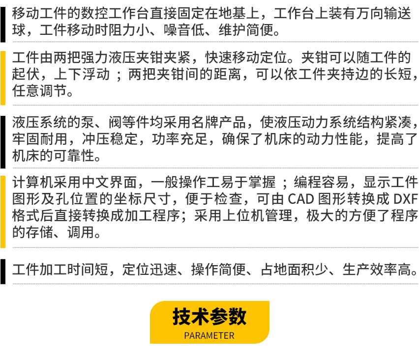 数控液压平板冲孔机,主要用于钢结构、电力和汽车等行业中小规格板材的冲孔,工件一次装夹后可进行冲孔加工,确保孔的位置精度,具有很高的工作效率和自动化程度,尤其适用于多品种的加工。